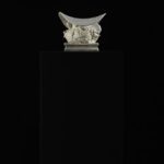 枕面形作荷叶,枕身是一对追逐嬉戏、首尾相衔的摩羯,系先模印鱼身、贴塑爪须,再剔刻细节纹理而成,枕座为“须弥座”式样。胎体白净,细腻坚致。整器釉色莹润,白中泛黄,呈现出特有的牙白色。