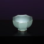 碗口呈等边八角形,圆唇,腹部圆弧渐收,下承圈足。口沿上的八条折角线纵贯至底。通体施粉青色瓷釉,晶莹润泽,釉面饱满。