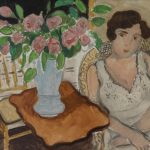 野兽主义创始人亨利·马蒂斯1917年移居尼斯,开启其创作生涯中关键的“尼斯时期”。蔚蓝海岸的光影环境促使其绘画语言发生转变,本作正是这一阶段的典范。马蒂斯摒弃窗户意象与自然光源的描绘,画面中的结构、光感与空间皆源自色彩的混合与碰撞。斜倚的女人与前景的玫瑰花束被赋予同等地位,共同构成视觉核心。色彩并置营造出均匀发光的效果,统一了色调,削弱立体感与景深,使所有元素在色彩的内在秩序中达成和谐,展现出马蒂斯以色彩定义结构、以光线重构空间的非凡智慧。