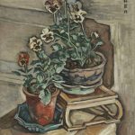 张荔英是“民国奇人”张静江之女,曾在巴黎、纽约和上海接受教育,1954年定居新加坡后成为“新加坡六大先驱画家”之一,也是“南洋画派”中唯一的一位女性先锋。在战乱频仍的20世纪40年代,张荔英与丈夫陈友仁被日军软禁于上海,她以绘画排遣,将日常生活呈现在艺术创作中,《三色堇》正是这一时期的重要作品。她以柔和色调与婉约笔触描绘,虽不苛求写实,但保留了物象的细节和质感,画面色彩和谐相融,呈现出典雅含蓄、温馨宁静的氛围。背景中古朴的床头板和案几堆叠出错落空间,在小景深中呈现出丰富的层次,在动荡的时局中开辟一方心灵的净土。