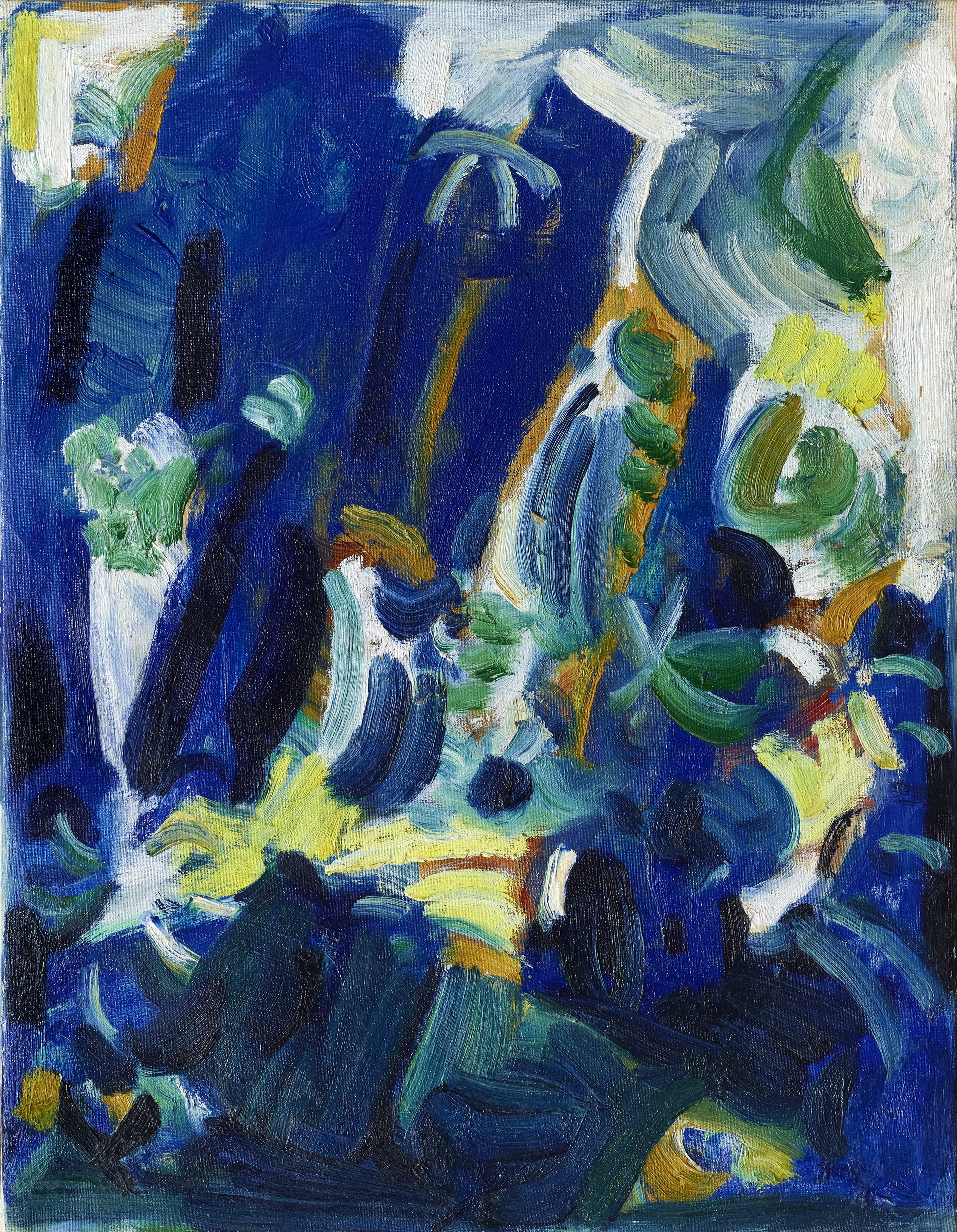 吴大羽是中国现代绘画史上的一位先知式人物。他曾言“天地是心胸的外形”,将微妙无迹的笔触运动之“势”,与心灵同天地激荡相感生成的“象”融合,并兼采建筑、音乐、舞蹈、文学中的动感与神思,开创出既奇绝灵幻,又洞幽烛微的“势象”美学,因此被誉为中国抽象艺术的奠基人。《无题128》是吴大羽晚期的代表性作品,以他最钟爱的普蓝色为主调,黄、绿、黑为点缀,花的形象渐化为抽象动势与饱满色彩。此作与《无题106》一道,勾勒出吴大羽晚年臻于化境的轨迹,并呈现花之意象对其抽象语言发展的核心意义,正如他所言:“人生所要求的是我们人人懂得如何开发人生的花朵。”