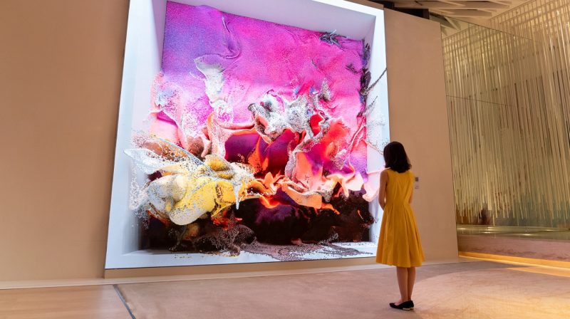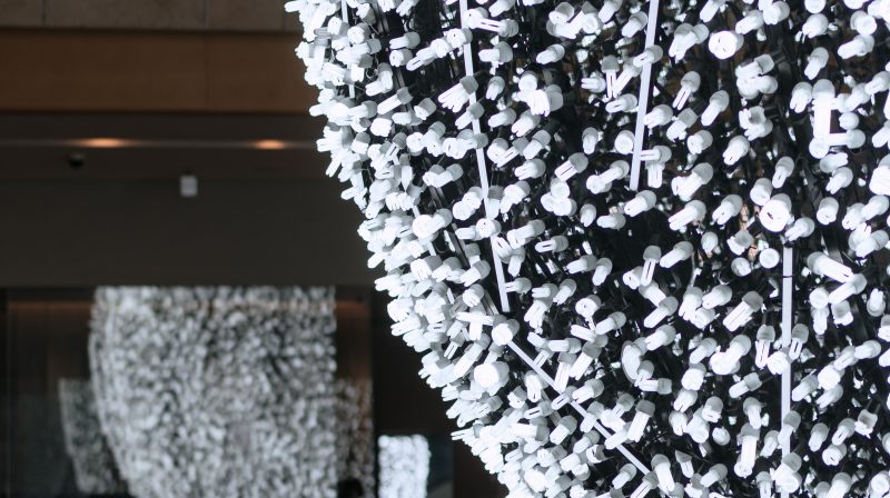 在达维欧的作品中,我们可以看到许多鲜少被其他艺术家关注的动物形象,如鸭嘴兽、狐猴、狨猴,其他一些更为常见的动物雕塑,则被赋予了与众不同的姿态与温柔诙谐的神情,敏感与力量兼具 。陈列于德基艺术博物馆公区的五件作品,轮廓强烈而清晰,线条利落,没有任何多余的装饰。《河马》有着温和善意的外表,《犀牛》的眼神则像一个勇士,坚决抵制着湮灭的命运。《长颈鹿》拥有优雅高挑的身姿,闪烁着智慧与灵性的目光中却隐含着对世界的敏感。《加拿大麋鹿》和《美洲野牛》都有着坚定无畏的姿态,似乎随时准备面对来自人类与自然的挑战。达维欧用雕塑定格着时间,赋予这些动物永恒的存在性,让如今生活在钢筋水泥中的我们得以通过艺术感受万物有灵的诗意世界。同时也唤起了我们对于生命的珍视与敬畏,让我们用心感知,用爱呵护每一个生命,共同守护我们赖以生存的家园。