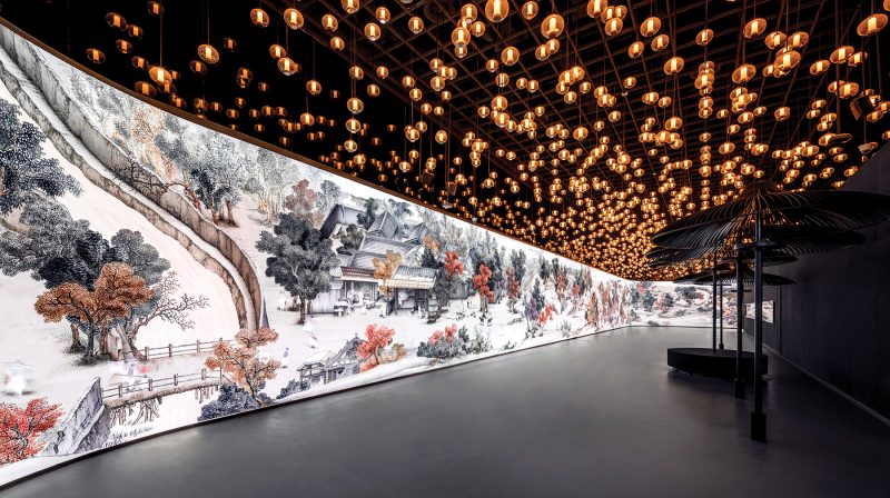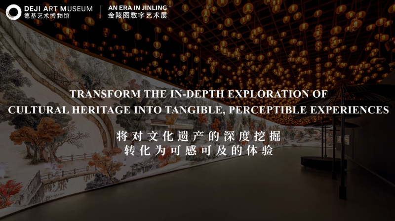 Painted by Qing dynasty court artist Feng Ning around the late 18th or early 19th century, “An Era in Jinling “ is regarded as “an encyclopedic portrayal of Jinling’s history, culture, and folk customs in its heyday” and is of immense cultural and historical value. The exhibition is not a simple digitalization. The painting is magnified and projected onto a 110m by 3.6m screen with built-in intelligence technology. This set-up enables the audience to physically immerse themselves into the dynamic Jinling cityscape and wander through the Jinling’s golden age of Jinling in real time. The Deji Art Museum hopes to encourage the audience to explore and interact with history and art across time with the assistance of advanced technology and each becomes an ambassador of Chinese culture.