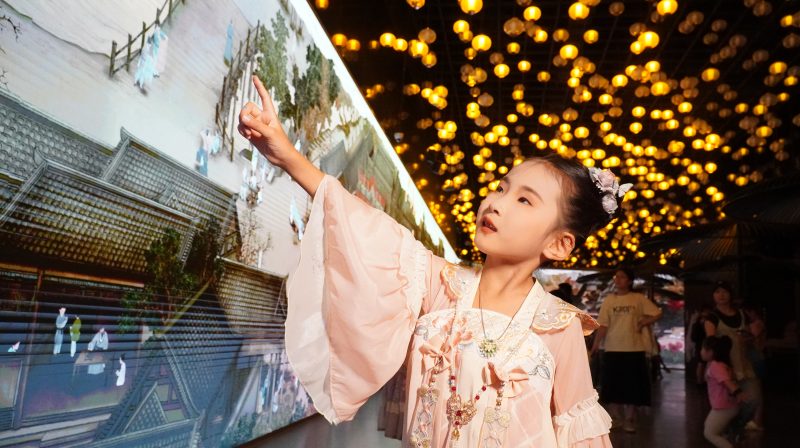 The audience will then be placed in the bustling streets of Nanjing City, make acquaintance with scholars and patricians, converse with merchants and peddlers, have intimate interactions with 533 figures in the painting, observe people’s daily lives in various scenes, and immerse themselves in the glorious cityscape of the historic Nanjing city. Visitors can stroll in the scroll to enjoy the wonder of catching a glimpse of the past and feel the grandeur and pulse of the city from more than a thousand years ago.