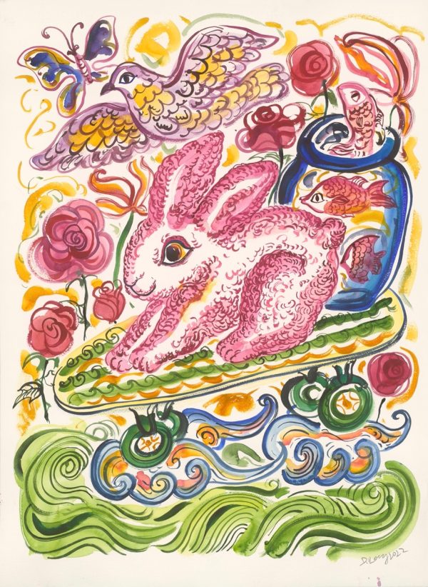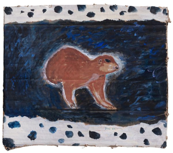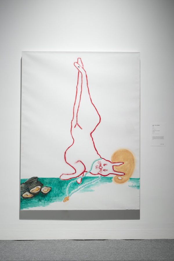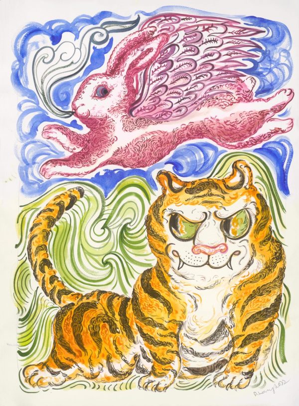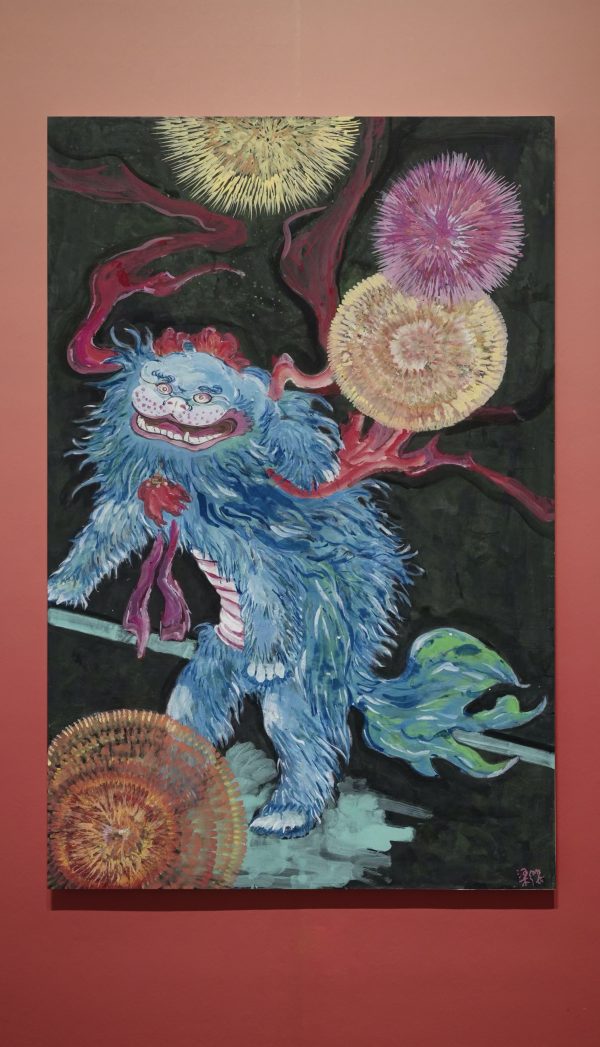 与“表皮”相对,“年年”收录的另一类作品直接地表现灵动感,让创作质地呈现难以名状的丰富性。艺术家发挥直觉,凭借情感和“手感”的累积,邀约偶然性参与创作。梁缨描绘的舞狮充满运动感的笔触(《京狮》),奇奇·史密斯描绘梅花鹿时似乎总在窸窣作响的线条(《御座》),大卫·史瑞格里描绘各类动物时松弛的态度及游刃有余的手段(《动物》),均延展出不明确的暗示性,逼迫着观众注意到它们从内部流出的生机与能量。展览中“表皮”的创作,创作者援引僵硬的模型,将生气巧妙地从外部注入其中。如果将这些工业化和虚拟的产物称为“线描的”,那么,这些模型步入“涂绘”阶段,是创作者们的意志所向。反而观之,沃尔夫林将涂绘视为比线描更高级的阶段,似乎也暗含着这样的观点:主观地给物质——不能否认,再传神的艺术品也是由颜料、塑材或显像的信息组成的——注入生命力的过程,是一个艺术的过程。无论创作呈现得表皮化或非表皮化,艺术家都是在展现人类主观活力与物质性之间寻找平衡,在“显现于眼前的情况”和“事物的真实情况”之间寻找观看的合适距离。
