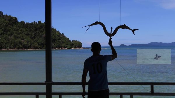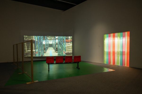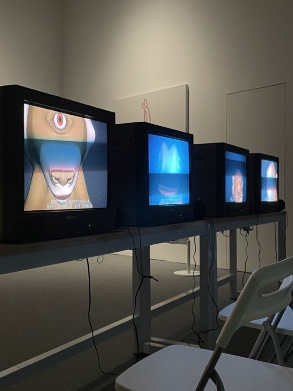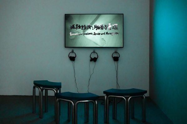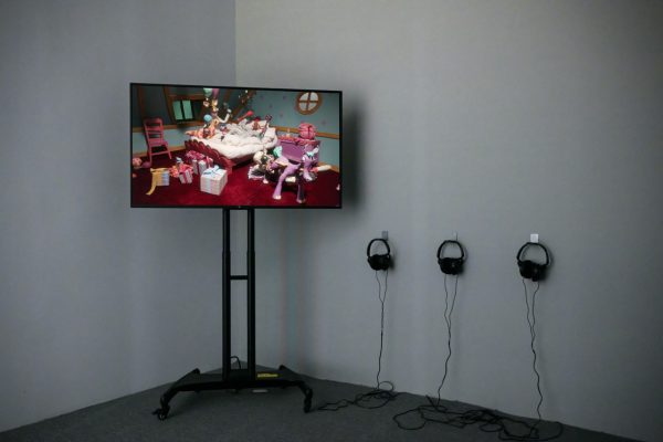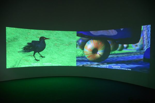 现在讨论艺术与科技,常常将科技视为共识和信仰,将艺术布阵成确立这信仰的仪式手段。“年年”中,凝结意识形态、争取广泛认同的任务交给了动物的形象。说远的,从法国拉斯科洞窟中的动物壁画算起,动物主题就存在于图像的历史中。说近的,马上农历新年了,无论是“年兽”③,十二生肖,都是动物,透着喜庆、热闹、温情。这样的主题自然能跨越文化,跨越媒介——从传统到虚拟的、表皮的。展览收录了表面平滑的绘画、雕塑和录像,像一个个“气泡”。比如孙一钿闪烁着气球质地的绘画《双头龙》,沈莘引用以Faceshift制作的山海经形象作为新自由主义论题辩论者的化身(《巨人的肩膀》),甚至仝天庆沿袭传统手法用高粱秆制作的纸灯《癸卯·灯笼》,不一而足。其中最近于彼得·斯洛特戴克理论的是唐潮的《心之电影:一个恐怖故事》。他使用建模分镜软件Previs Pro构筑的叙事蒙太奇,并以创作致敬徐克导演的《花月佳期》,回应被困于显像管、beta带和VR等迭代信息媒介中的生命百态。