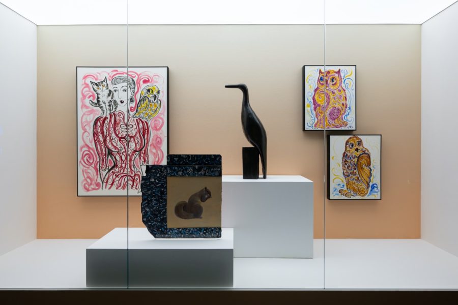 动物的形象与这类平衡的诉求相匹配。詹姆斯·乔治·费雷泽在著作《金枝》中提出这样的观点:面对恶劣不可控的自然环境,出于安全考虑,原始先民把自己的灵魂寄放在动物身上,动物图腾形象及图腾崇拜随之产生。或许,动物图像从诞生之初,虽然是自然之象征,但从来就被赋予浓重的主观色彩。制像技术高度繁荣发达的今天,艺术家们依然展示动物形象,为自然世界挂出新的认知反馈和皮相。但我们不能说,新的面貌是在否认自然界不可穷尽的神秘而“表现真实情况”的状态。事实上恰恰相反——展览中,野性被隐晦或集中地(例如娜塔莉·杜尔伯格和汉斯·博格的作品《随心之乐》)展示出来,艺术家们似乎在默认,他们意志向动物形象的投射,是迈向未知领域的脚步。赋予活力的行径归属人类的共识世界,动物本体归属不可琢磨的物质世界,穿透高耸的藩篱,是艺术创造的源动力之一。